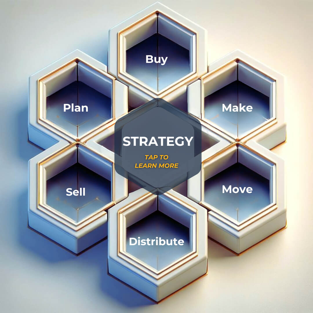 Each operational process, or function – BUY, MAKE, MOVE, DISTRIBUTE, and SELL – needs its strategy; however, the overall supply chain strategy covers the end-to-end chain from suppliers through to customers. It also determines the four flows – materials and products; information; cash and capital; and work – while ensuring the integration of the process strategies to achieve the overall strategy.